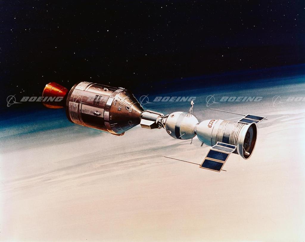 In August 1974, Rockwell International's Space Division completed the docking module and the U.S. half of the international docking system for the Apollo-Soyuz test project.