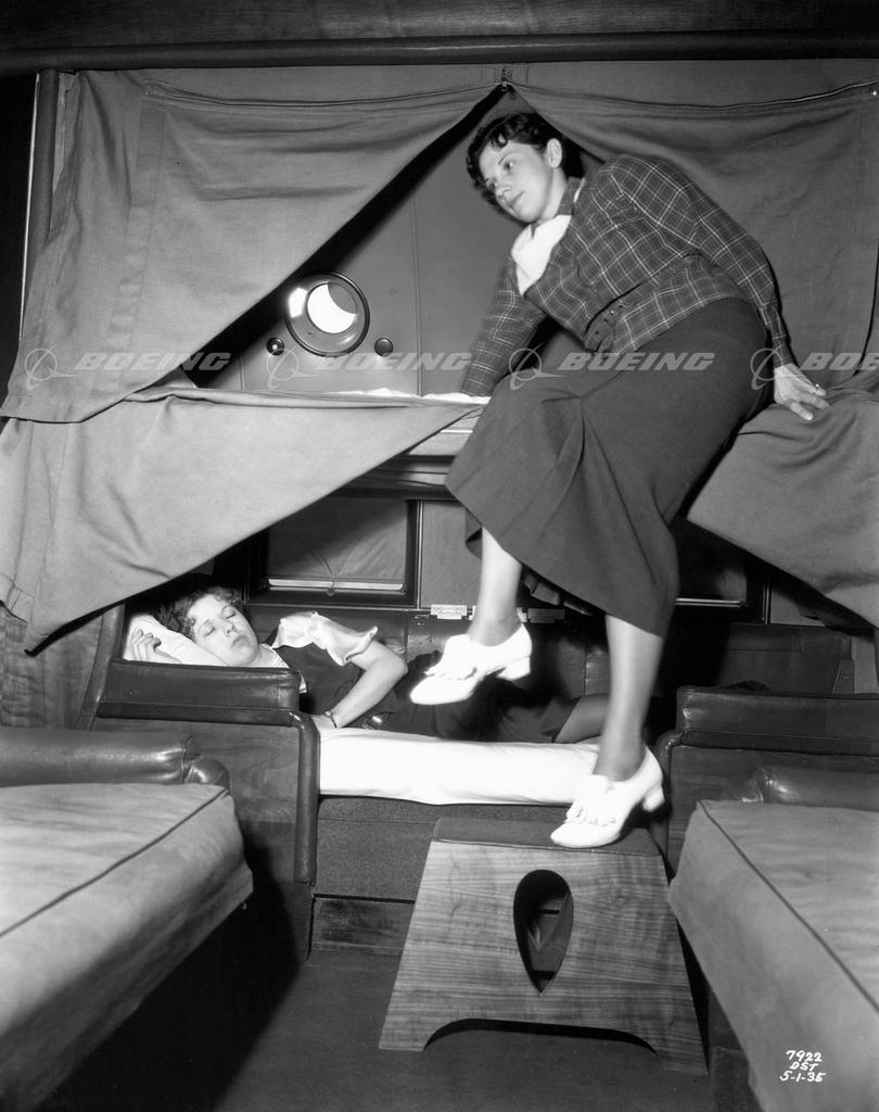 Stewardess Lowers 377 Stratocruiser Sleeping Berths
