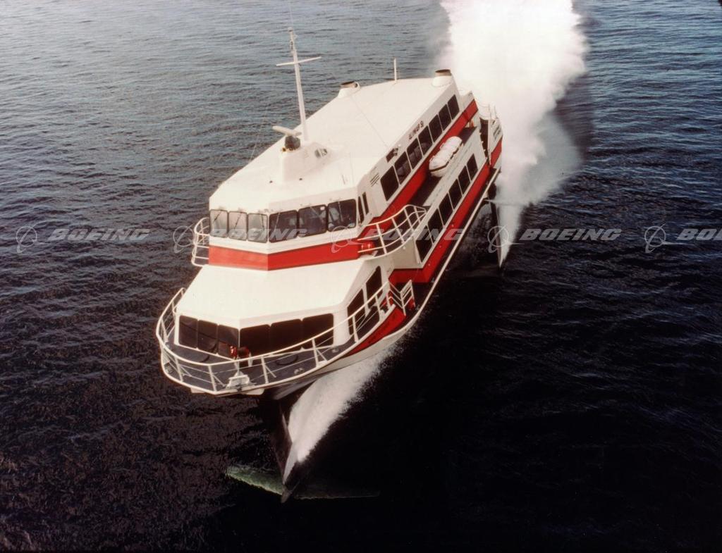 Boeing Marine Systems (BMS) was formed as a separate operating division of The Boeing Company in January 1976 to continue 17 years of hydrofoil research and manufacture. The waterjet-propelled Jetfoil offered a fast, smooth ride even in rough water.