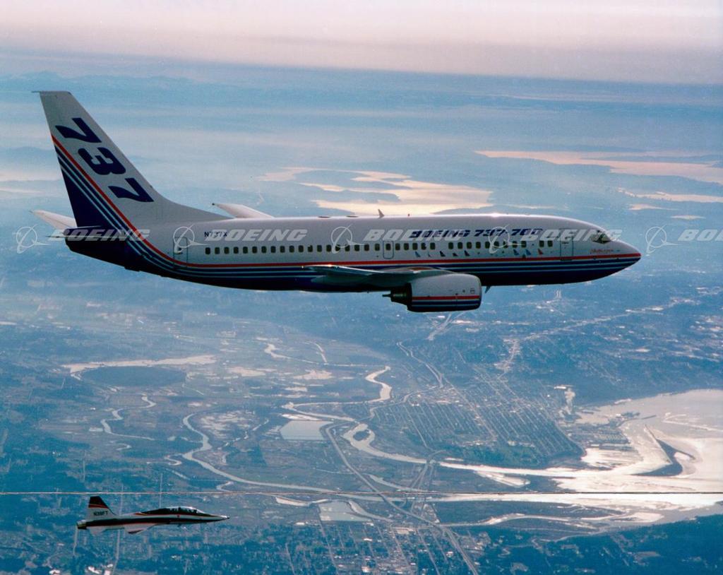 737-700 on its First Flight, Accompanied by a Chase Plane