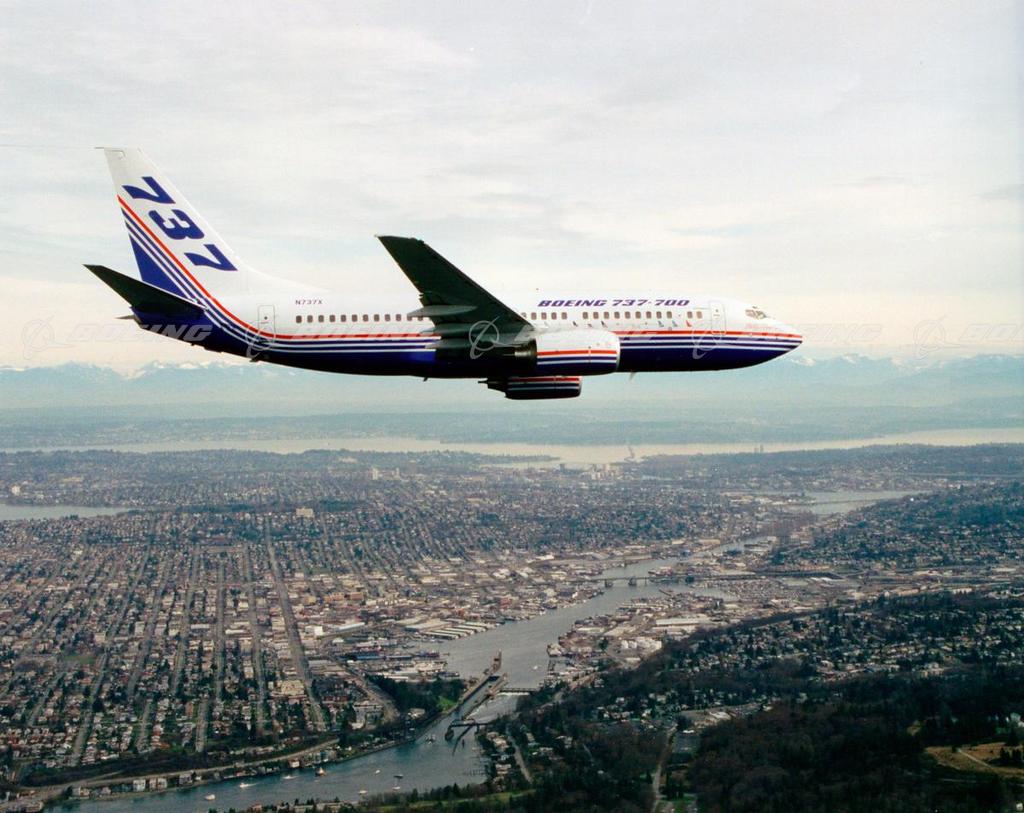 737-700 on its First Flight, Accompanied by a Chase Plane