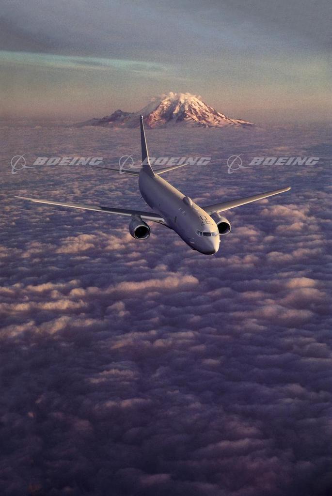 US Navy P-8A Poseidon flies above Mt. Rainier