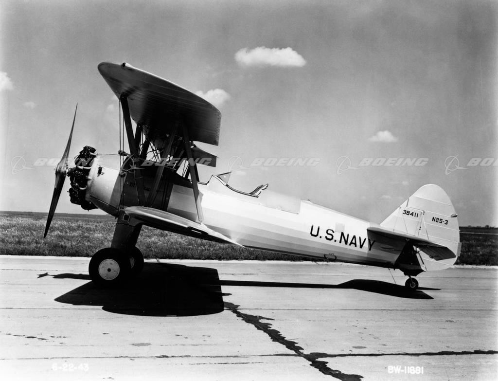 N2S-4, the Navy Version of the Stearman Kaydet, in Flight