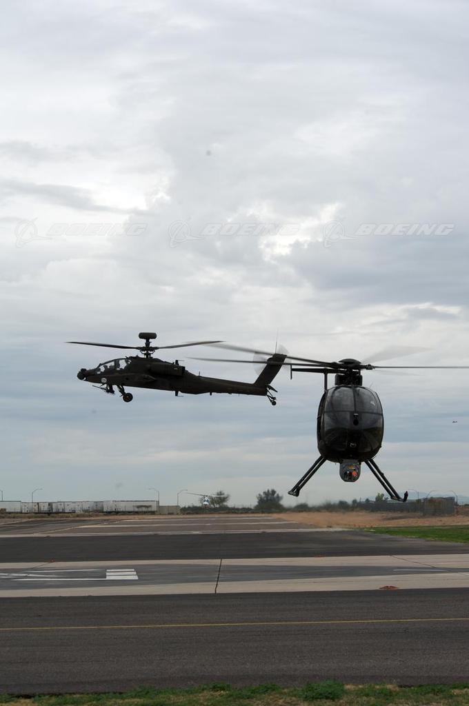 MH-6 Little Bird UAV with AH-64D Apache Longbow at Mesa, Arizona