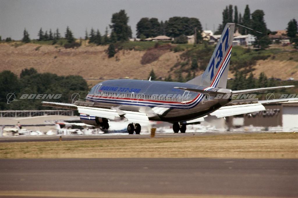 Although it has the largest model designator of its generation, the 737-500 is actually smaller than either the 737-300 or the 737-400. The 737-500 is 101 ft 9 in long and can seat up to 132 passengers in an all-economy configuration. It was built to replace the 737-200. About the same size as the 737-200, it is the smallest member of the 737 family, but uses all the advanced technologies of the larger 737-300 and 737-400 models. The 737 family of jets share the reliability, simplicity, family commonality, and low maintenance costs that have made the 737 the favorite of the world's airlines.