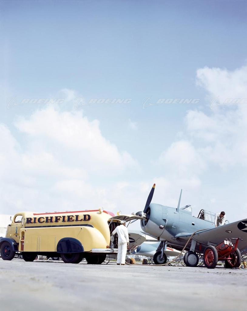 SBD-3 Dauntless at El Segundo with "Swiss Cheese" Flaps
