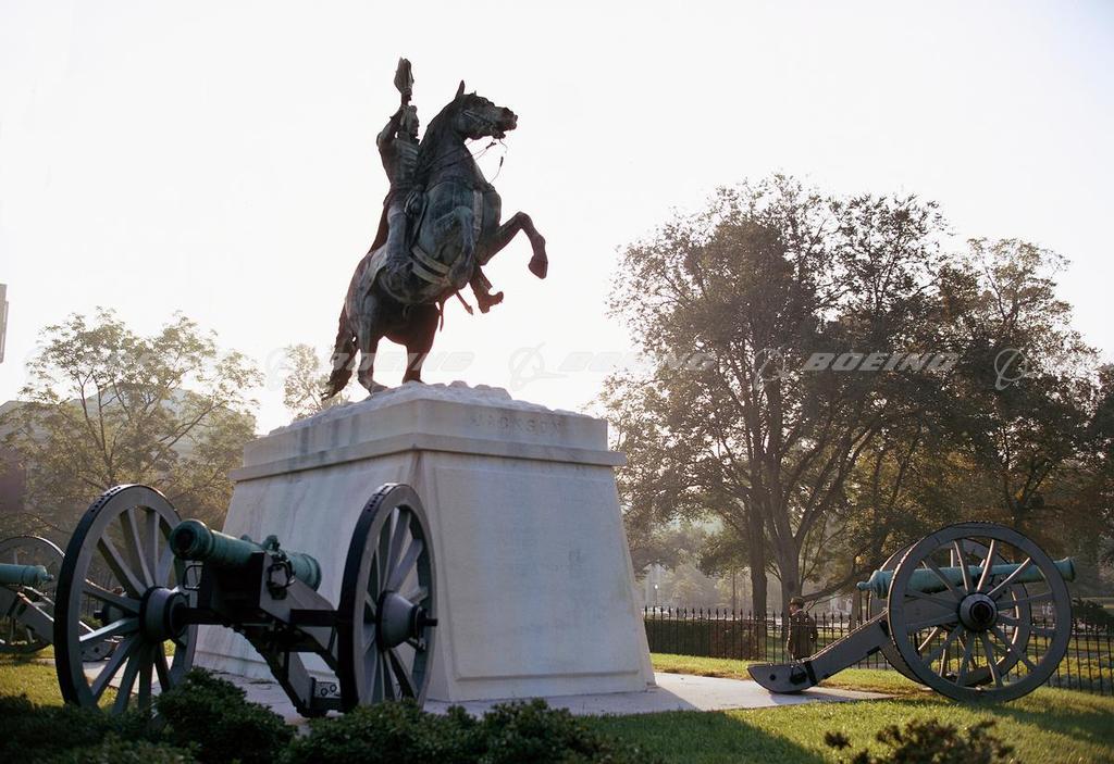 The White House North Portico Behind Andrew Jackson Statue at Lafayette Park, Washington D.C.