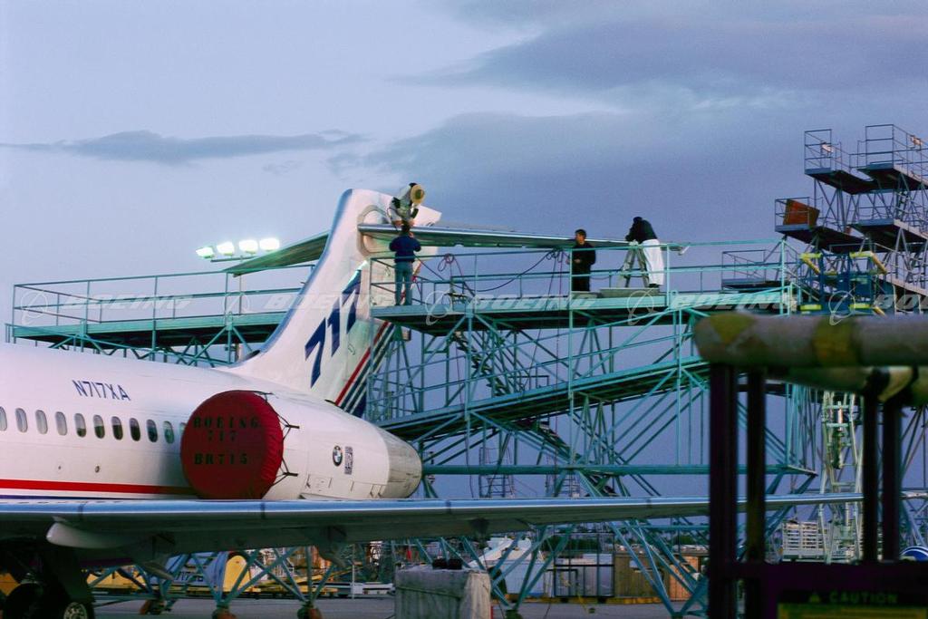 The 717 is a full-size twinjet designed specifically for the short-range, 100-seat regional airline market and is a very efficient and exceptionally quiet airplane. Its advanced technologies and rugged simplicity of design allow it quick turnaround time at a wide range of airports, so crew and passengers spend less time on the ground. It makes effective use of today's technology to lower operating costs, reduce noise and emissions, and provide big jet comfort. The airplane, formerly MD-95, was designated the Boeing 717 following the merger of McDonnell Douglas and The Boeing Company in 1997. In early 2005, after careful assessment of the challenging 100-seat market, Boeing announced that it will conclude 717 production in 2006 after delivering on current customer commitments.