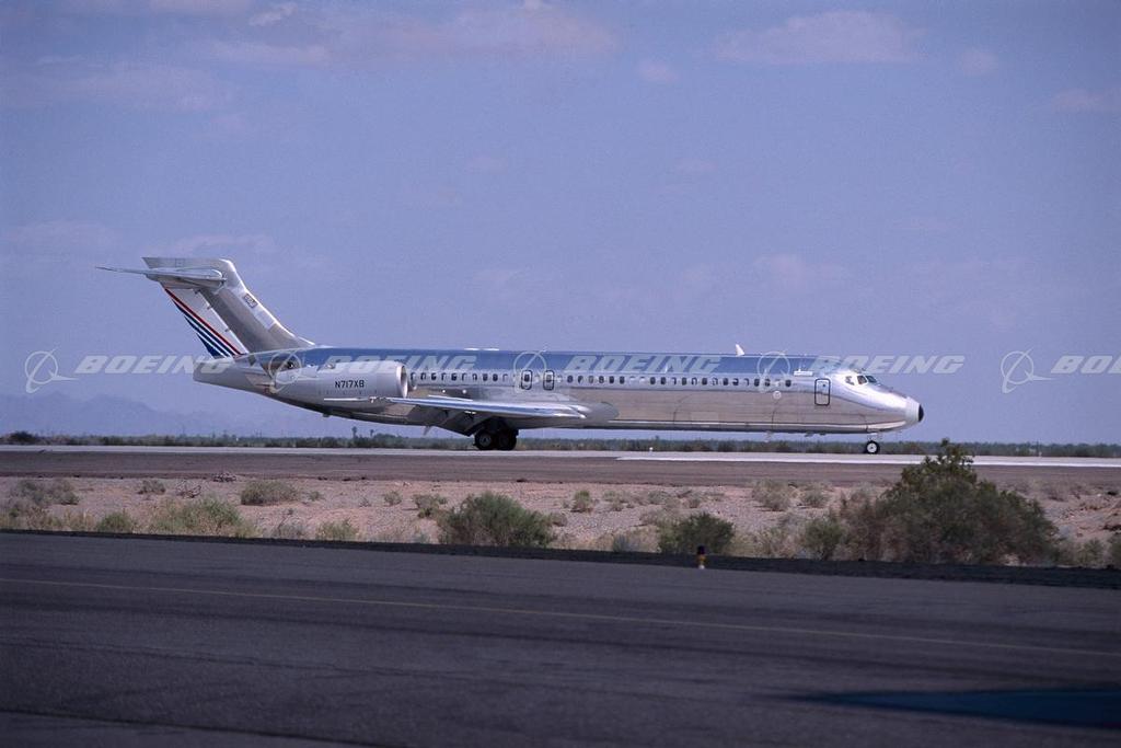 The 717 is a full-size twinjet designed specifically for the short-range, 100-seat regional airline market and is a very efficient and exceptionally quiet airplane. Its advanced technologies and rugged simplicity of design allow it quick turnaround time at a wide range of airports, so crew and passengers spend less time on the ground. It makes effective use of today's technology to lower operating costs, reduce noise and emissions, and provide big jet comfort. The airplane, formerly MD-95, was designated the Boeing 717 following the merger of McDonnell Douglas and The Boeing Company in 1997. In early 2005, after careful assessment of the challenging 100-seat market, Boeing announced that it will conclude 717 production in 2006 after delivering on current customer commitments.