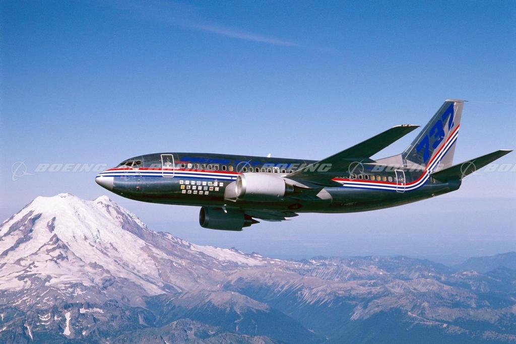 Unpainted 737-500 in Flight Above Mt. Rainier