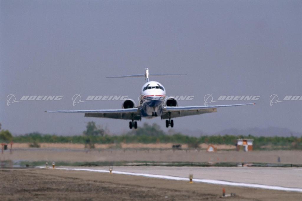 The 717 is a full-size twinjet designed specifically for the short-range, 100-seat regional airline market and is a very efficient and exceptionally quiet airplane. Its advanced technologies and rugged simplicity of design allow it quick turnaround time at a wide range of airports, so crew and passengers spend less time on the ground. It makes effective use of today's technology to lower operating costs, reduce noise and emissions, and provide big jet comfort. The airplane, formerly MD-95, was designated the Boeing 717 following the merger of McDonnell Douglas and The Boeing Company in 1997. In early 2005, after careful assessment of the challenging 100-seat market, Boeing announced that it will conclude 717 production in 2006 after delivering on current customer commitments.