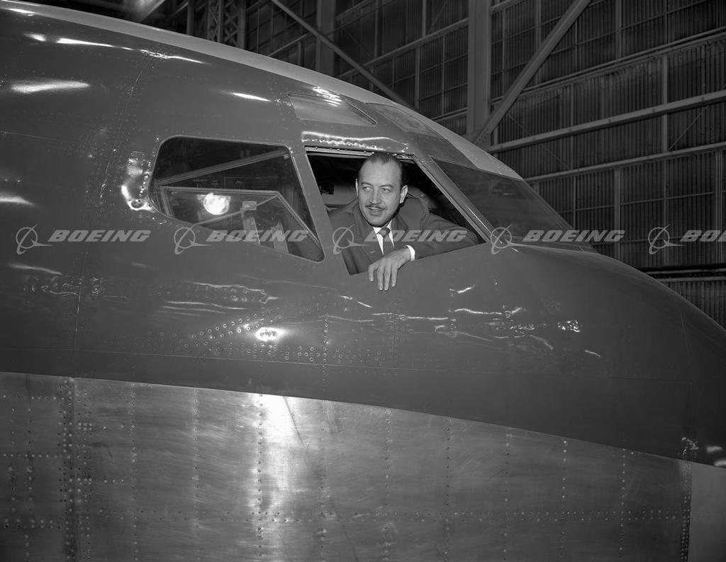 Tex Johnston (1914-1998) was a pioneering test pilot for Boeing. On Aug. 7, 1955, he performed two barrel rolls with the Dash 80 over the Seafair hydroplane course on Lake Washington in Seattle.