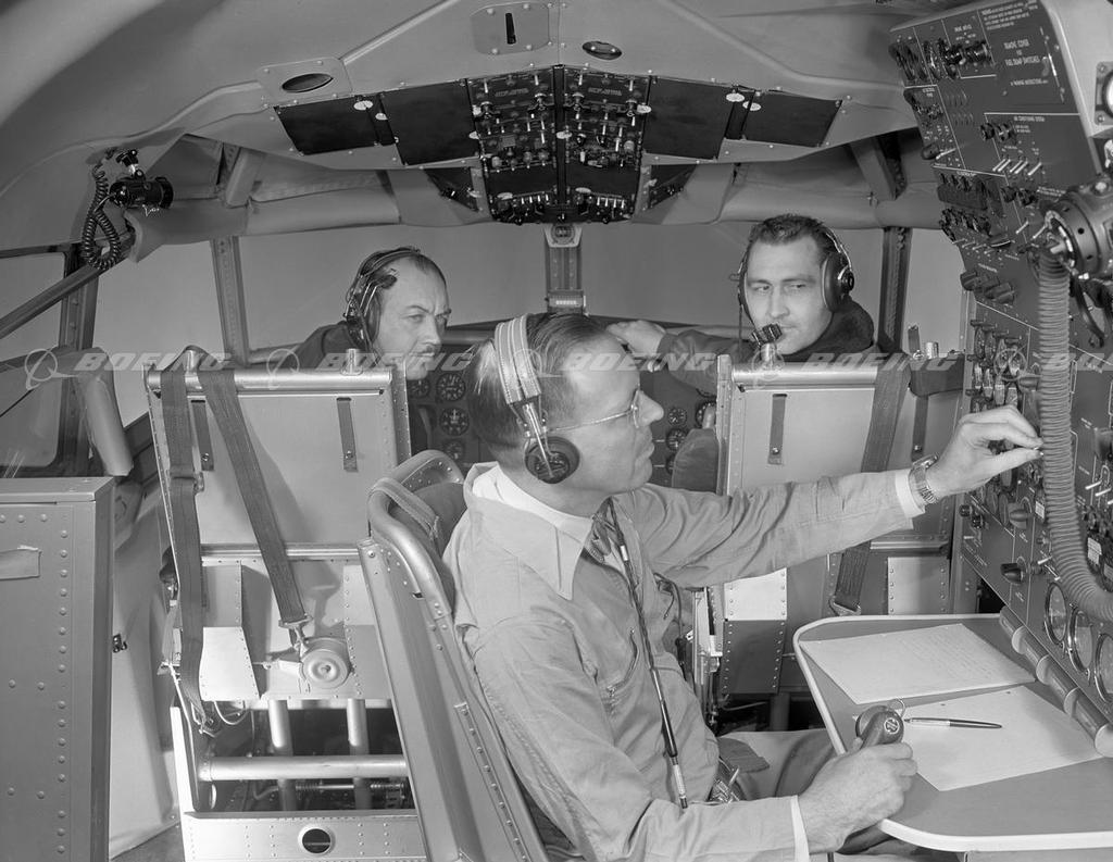 Dash 80 First Flight Crew, Tex Johnston, Bert Binegar, and Dix Loesch in the Flight Deck