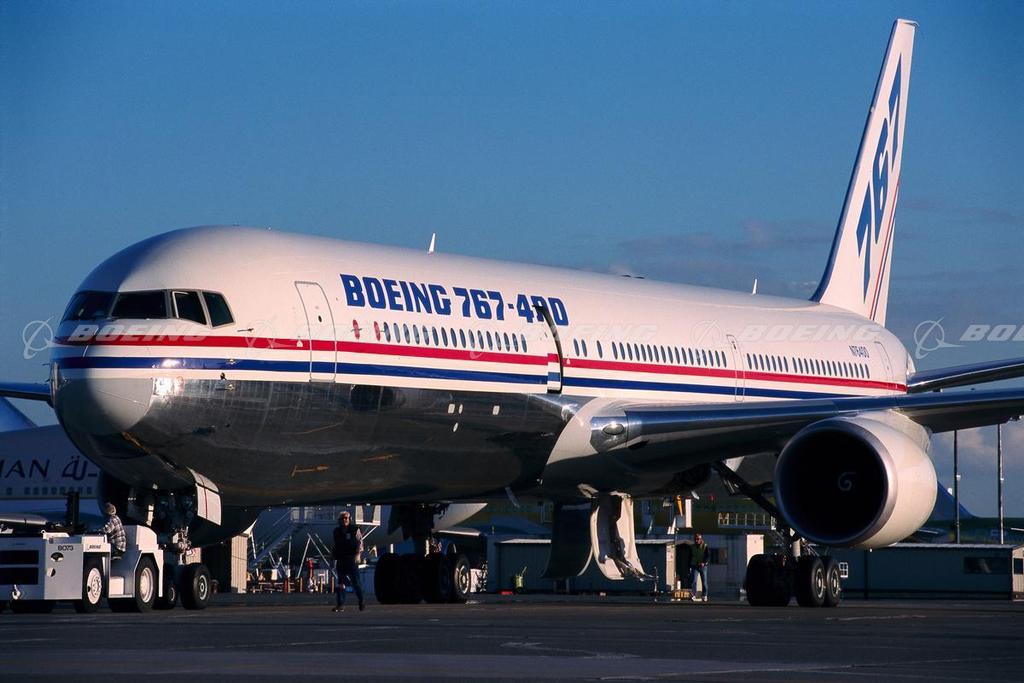 The 767-400ER brings significant improvements in operating economics over competing airplanes in the 240- to 300-seat market. The payload capability, intercontinental range, passenger comfort and commonality with other Boeing jetliners give this airplane strong market appeal. Sized between the Boeing 767-300ER and the Boeing 777-200, the 767-400ER features a lengthened fuselage; aerodynamic improvements, increased takeoff weight capability; and an all-new main landing gear. It is designed to be the most efficient airplane in its size category. Efficient design gives the higher-capacity 767-400ER excellent range capability (approximately 5,645 nautical miles or 10,454 km) to fly about 99 percent of the routes currently being served by airplanes in this size category. The 767-400ER features new, highly back-swept (raked) wing-tip extensions that increase the 767's 156-foot wingspan to 170 feet, 4 inches (51.9 m) designed to increase the aerodynamic efficiency of the wing. This efficiency of design and economy of structure affords the 767-400ER more gate and taxiway flexibility. It can use the same gates as the DC-10-30, MD-11 and L-1011, unlike the A330-200, which must use gates sized by the industry for large airplanes such as the 747 and 777. The 767-400ER interiors have adopted the architectural lines of the award-winning 777 interior. Newly sculpted sidewalls, ceilings and stow bins enhance the wide, open feeling passengers prefer.