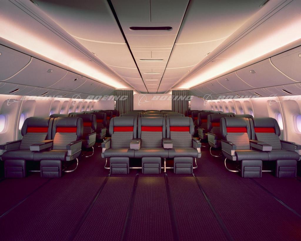 The 777 was designed especially for comfort on longer flights. The 777 is 30.9 inches (78.4 centimers) wider than its Airbus counterpart, the A330/340. This extra elbowroom makes the 777 the widest airplane in its class, allowing for roomier aisles and seats. Although individual airline customers choose seating configurations, once an interior is configured, the extra width makes a difference in coach, business, and economy classes. When airlines opt to seat nine abreast in economy class, for example, the seats can be 18 1/2 inches (46.99 centimeters) wide - the widest in the industry. In business class, seating can accommodate 20-inch (50.8 centimeter) wide seats, the same size as first-class seats on many competing airplanes.