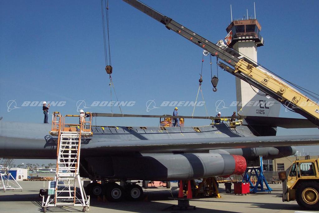 A U.S. Air Force B-1B bomber returned to flight in late May of 2009 after a team led by The Boeing Company replaced its catastrophically damaged upper-center boron longeron – the aircraft's "backbone." The B-1, Swift Justice, was damaged during a routine training mission in December 2007. An engine-bleed air duct rupture triggered a temperature warning light, forcing the crew to land the aircraft at Ellsworth Air Force Base, South Dakota. Replacing the upper-center boron longeron, which is essential for stability in flight, is not a simple task because the part is unique to each aircraft, with no spares available. Boeing Integrated Defense Systems and Boeing Commercial Airplanes employees from sites across the company worked together with the Air Force and material vendors to re-create the damaged part. Specialty Materials Inc. in Lowell, Massachusetts., the original boron/epoxy supplier, provided 14,000 feet of 4-inch-wide unidirectional tape to fabricate the longeron. Cytec Engineered Materials Inc., in Tempe, Arizona, supplied the adhesive film and adhesive primer. Due to the part's complexity and 47.5-foot length, the Boeing Composite Fabrication & Assembly Center in Seattle was selected to perform the layup and cure the part in its 90-foot-deep autoclave.