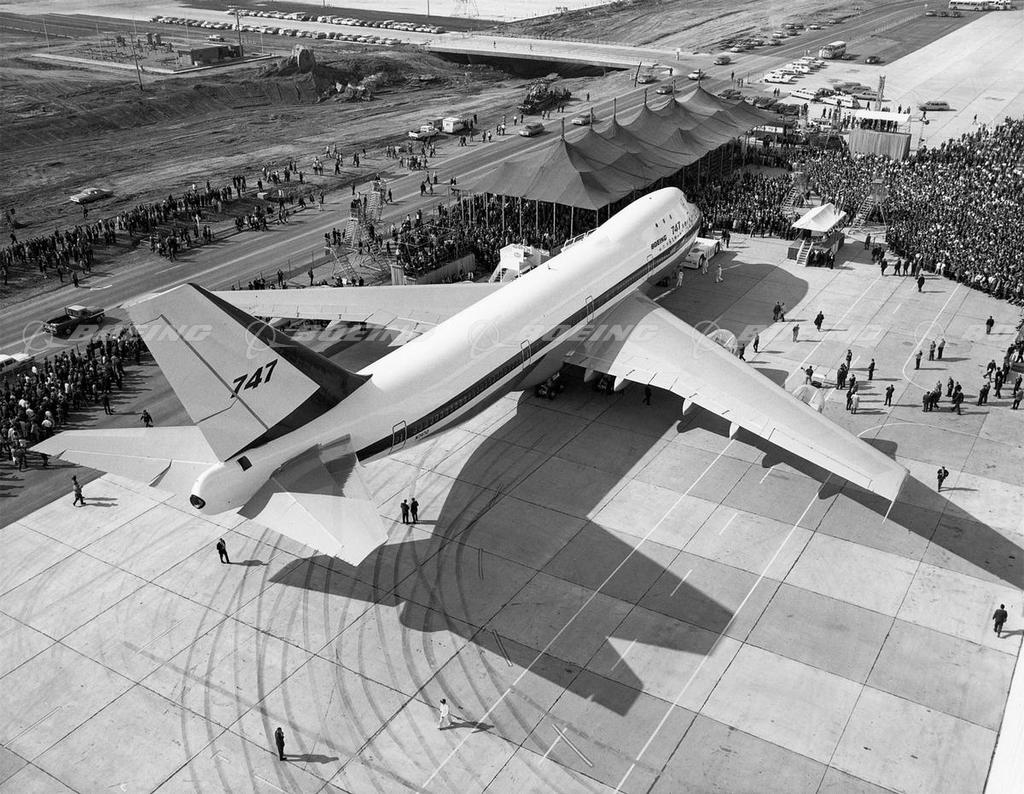 On September 30, 1968 the first Boeing 747-100 was rolled out during ceremonies at the new assembly facility in Everett, Washington.