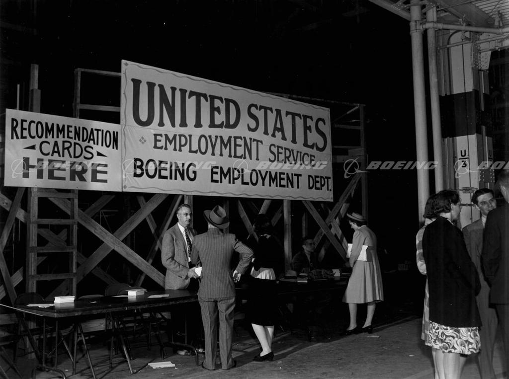 Job Seekers Line Up Outside of the Personnel Building, Stearman Aircraft Plant, Wichita, KS