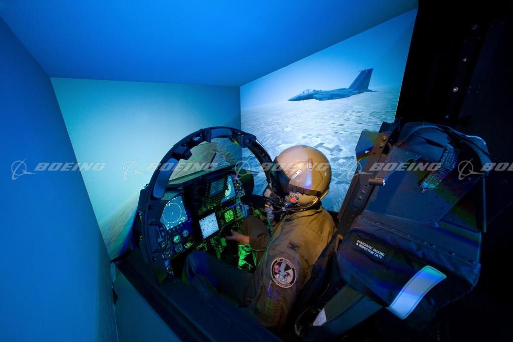 Pilot wearing Digital Joint Helmet Mounted Cueing System (DJHMCS) in an Advanced F-15