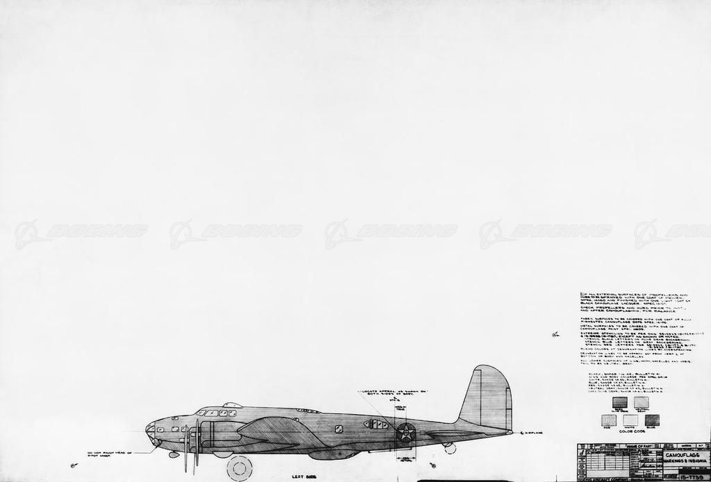 The Boeing B-17C of 1940. On this model of the Flying Fortress, side blisters were replaced by flat paneled gun positions, a gun position was installed under the fuselage, and greater armor plate was added. The first of 20 of this order were assigned to Britain's Royal Air Force, and Germany got her first taste of effectiveness of this substratoshpere bomber when an RAF squadron scored hits on the battleships Scharnhorst and Gneisnau in the harbor of at Brest from altitudes never before used in bombing. A total of 38 B-17Cs was built, while Stratoliner production also continued. B-17C Specifications: Wing span, 103' 9"; length, 67' 10"; weight, 39,065 lbs; speed, 300 mph; ceiling, 36,000 ft; range, 3,400 miles; power, four Wright R-1820 (1,000 hp) engines.
