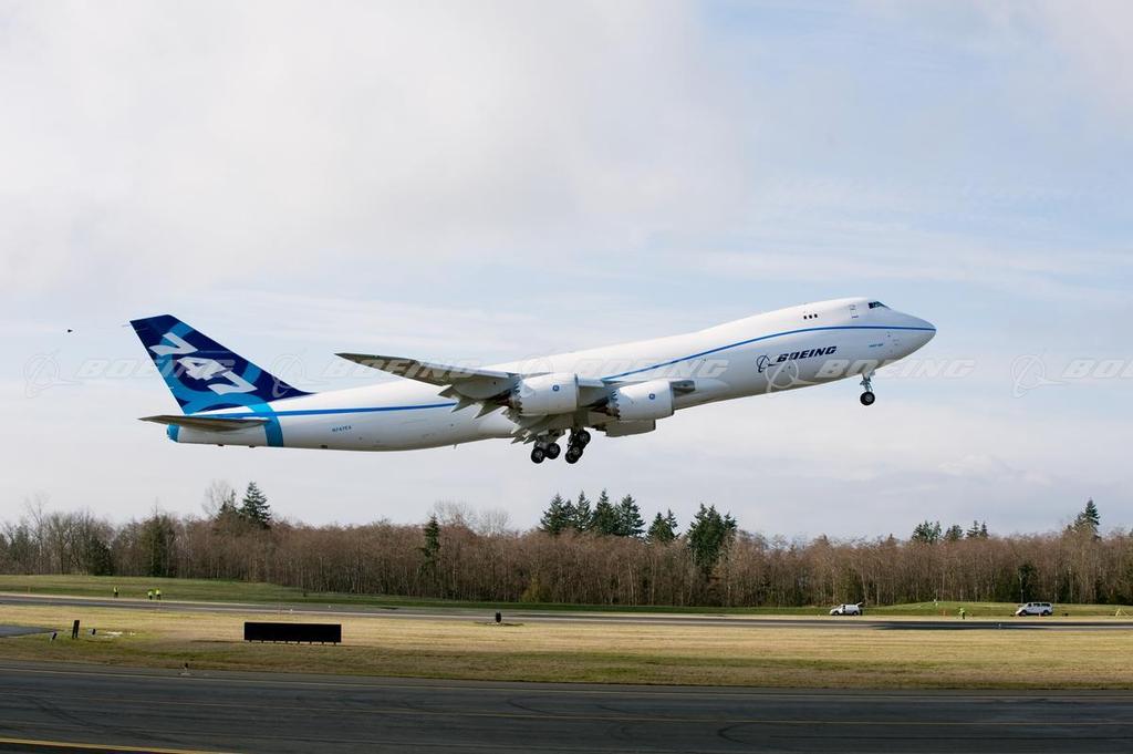 The Boeing 747-8 Freighter successfully took to the sky for the first time before more than 5,000 employees, customers, suppliers and community leaders. The flight begins a test program for the world's most efficient freighter.
