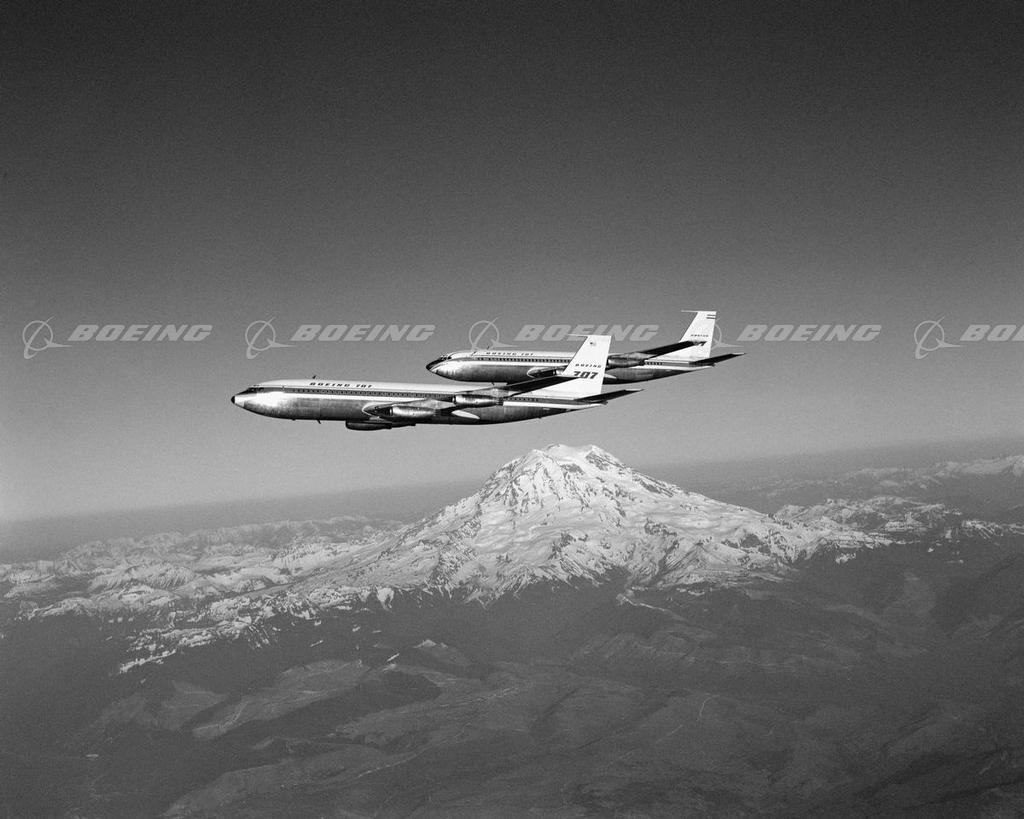 Two 707-120s Flying Over Mt. Rainier in Certification Flight