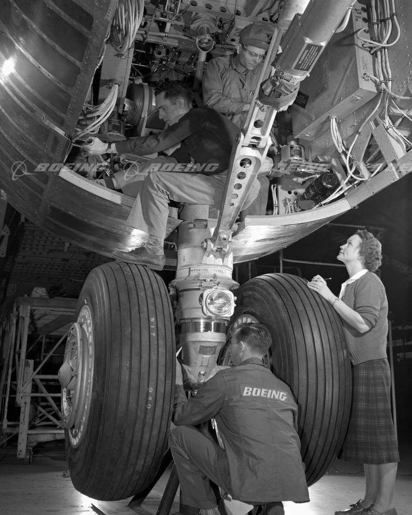 Men and Woman Work on B-47 Stratojet Landing Gear