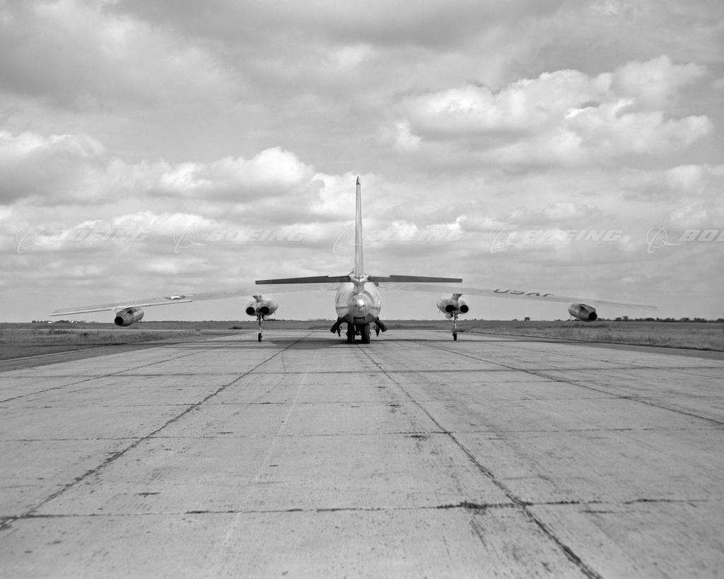 At the time of its first flight, Dec. 17, 1947, the B-47 Stratojet represented a radical departure from traditional design, and it set the design standards for all large jet aircraft until the present time. The six-engine Boeing B-47 was America's first multiengine swept-wing jet bomber. Its thin 116-foot wing was extraordinarily flexible and swept back at a 35-degree angle. Eighteen small rocket units in the fuselage provided jet-assisted takeoff (JATO), and parachutes cut its landing speeds. Later models were powered by 5,200-pound-thrust axial-flow jet engines, and top speeds were 600 mph. A total of 2,032 B-47s in all versions were built.