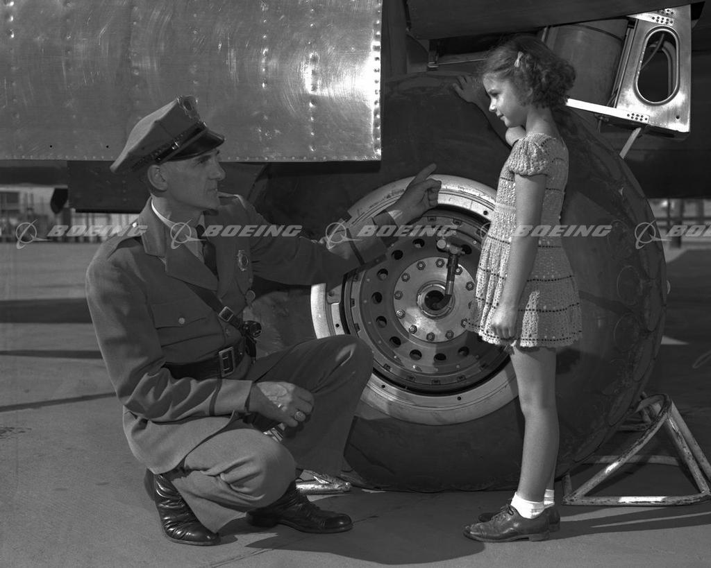 Stewardesses Under 307 Stratoliner, Pointing at Propellers
