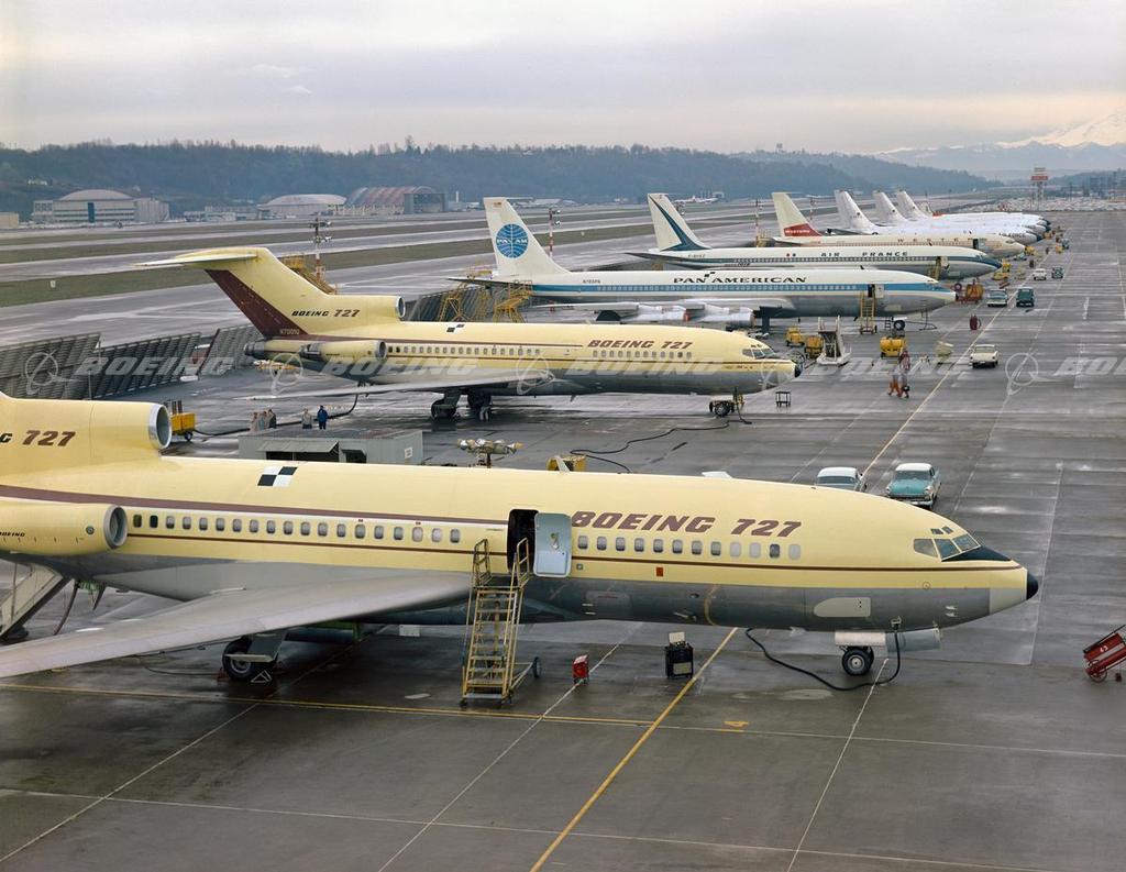 First and Second Boeing 727s on Boeing Flight Line with 707s