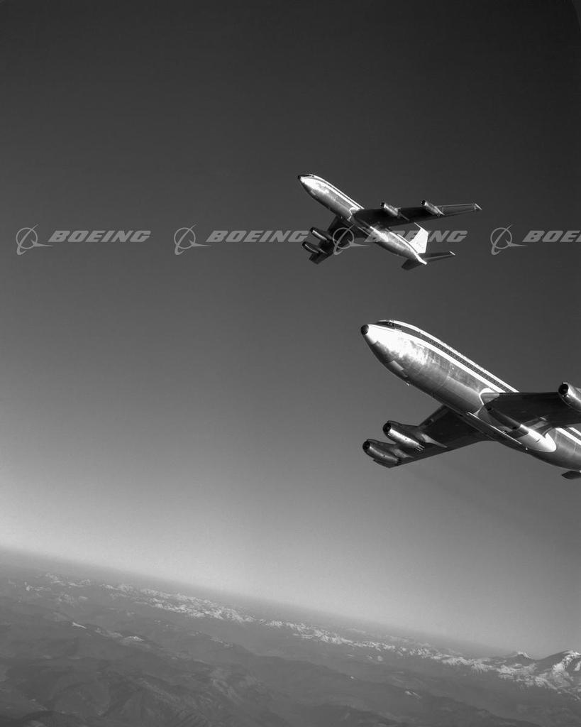 Two 707-120s Flying Over Mt. Rainier in Certification Flight