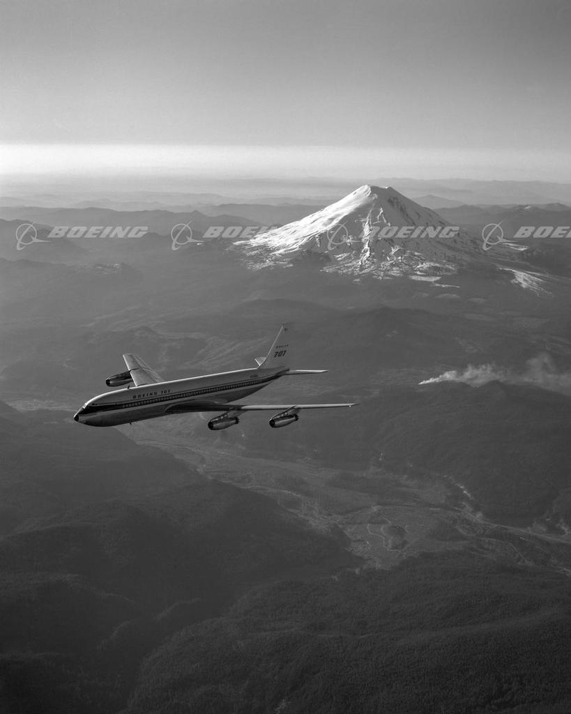 707-120, 1 and 3, in Certification Flight over Mt. Rainier