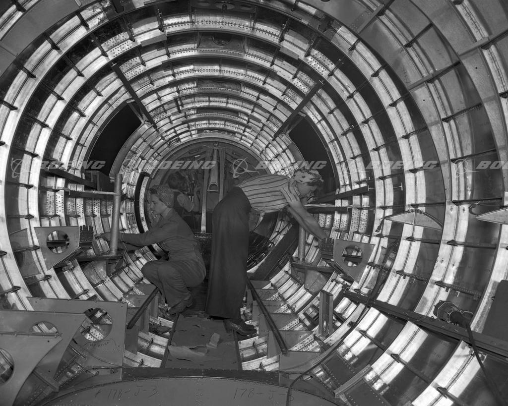 Woman Drilling a B-17 Flying Fortress Tail Turret