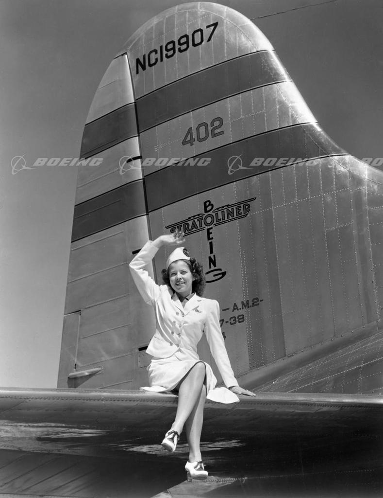 Stewardesses Under 307 Stratoliner, Pointing at Propellers