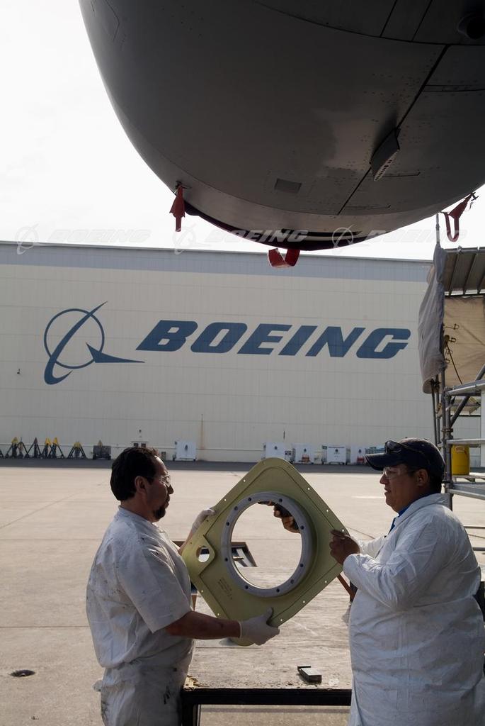 Boeing Workers on the Wing of a C-17 Globemaster III