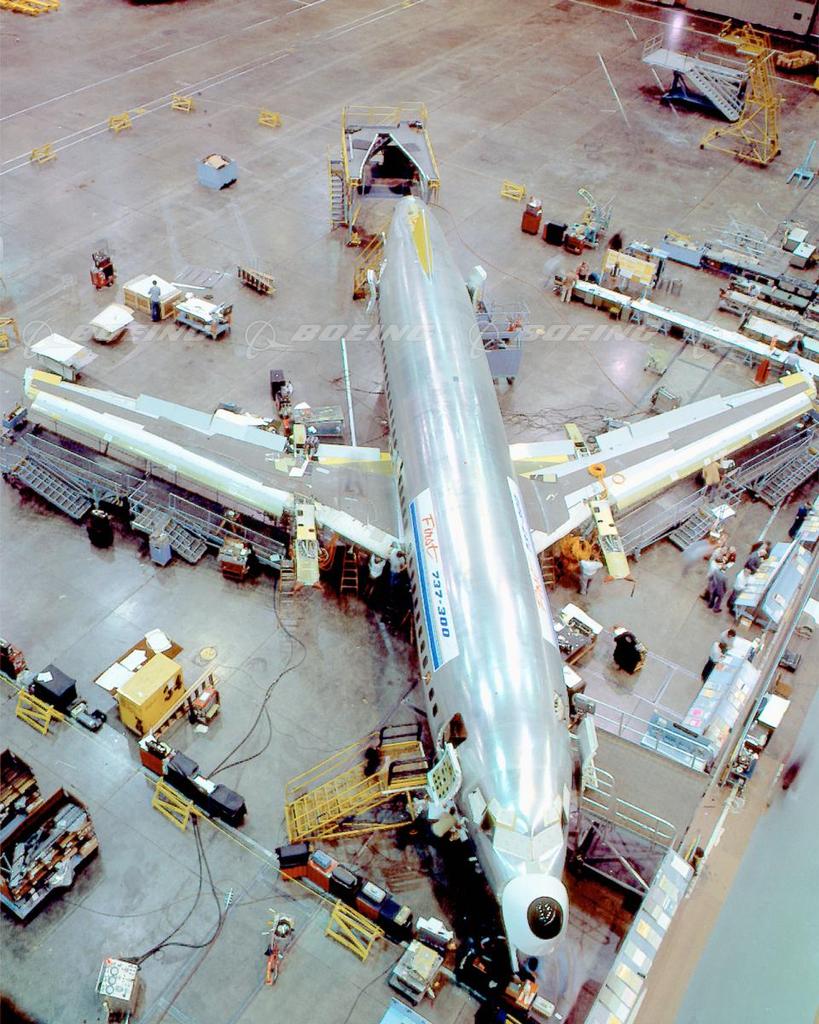 A lengthened fuselage version of the 737-200, the 737-300, was ordered into production in March 1981, with first factory rollout January 17, 1984 (pictured here). First flight of the advanced derivative was on February 24, 1984, and the first delivery to US Air came on November 28, 1984. However, the joint leadoff customer Southwest Airlines placed the first 737-300 into passenger service on December 7, 1984. Design changes resulted in lower operating costs and a reduction in fuel burn up to 30% less than the 737-200.