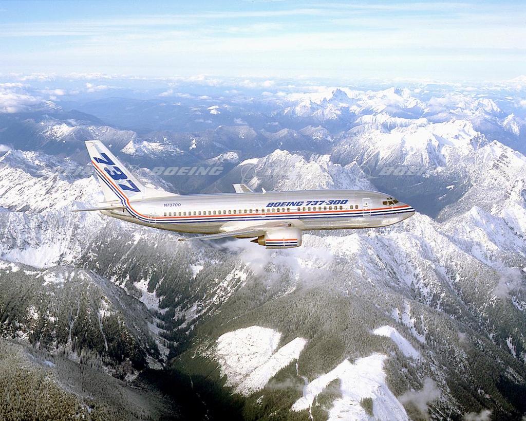 737-300 Flies Above Snowy Mountains