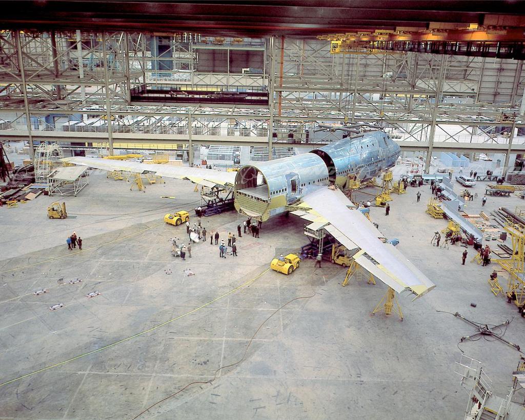 Production of the first 747s began as final phases of the Everett factory building project were completed.