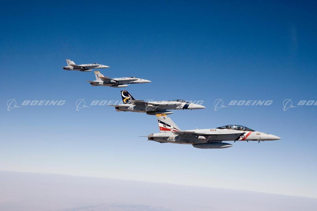Two F/A-18C Hornets with an F/A-18E and F/A-18F Superhornet Flying in Formation