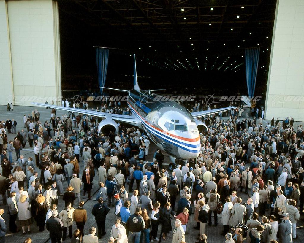 Crowd Surrounds the New 737-300 at its Rollout Ceremony in 1984