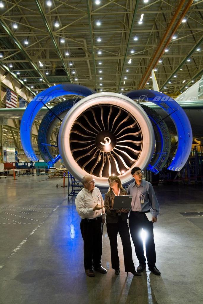 The GE90 engine family has surpassed 4 million flight hours powering the 777 twin-engine aircraft. The original GE90-85B engine entered service in November 1995. The GE90-115B, certified at 115,000 pounds of thrust powers the 777-200LR and the 777-300ER.