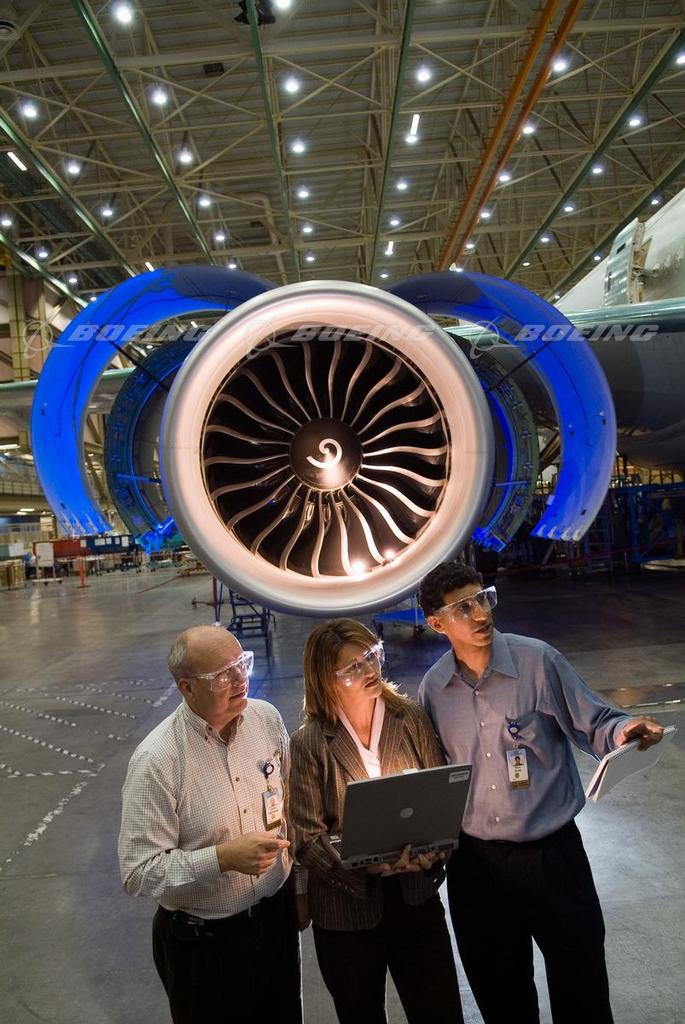 Boeing Engineers with 777 Engine