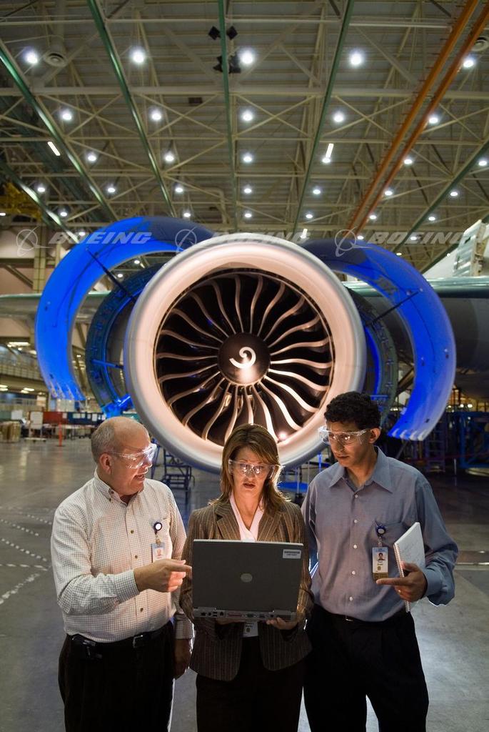 Boeing Engineers with 777 Engine