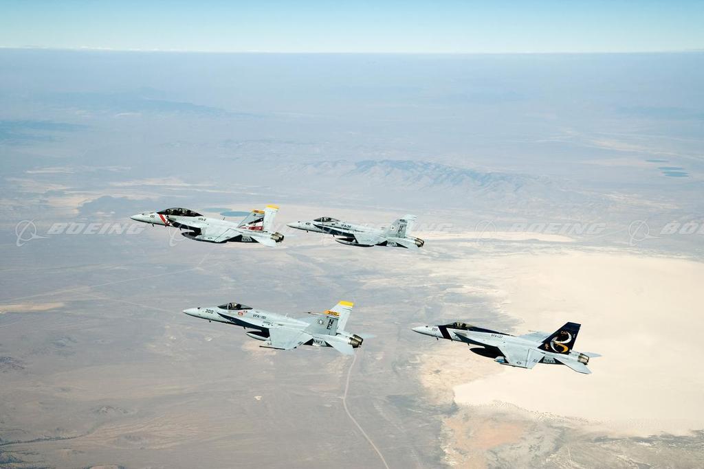 Two F/A-18C Hornets with an F/A-18E and F/A-18F Superhornet in Flight over Nevada