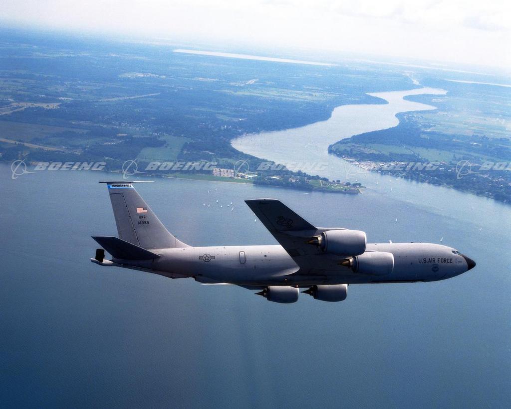 The KC-135 was the only jet airplane designed specifically for aerial refueling. More than 732 KC-135s were built, and most, with modifications, remain in service into the 21st century. The KC-135 shared the Dash-80 prototype with the Boeing 707 commercial transport, but was launched first in 1956. The KC-135's aerial refueling equipment in the lower deck leave the upper deck clear for 25 tons of cargo or 80 troops. KC-135s supplied warplanes with fuel during the Persian Gulf conflict, Operation Enduring Freedom over Afghanistan, and for homeland defense.