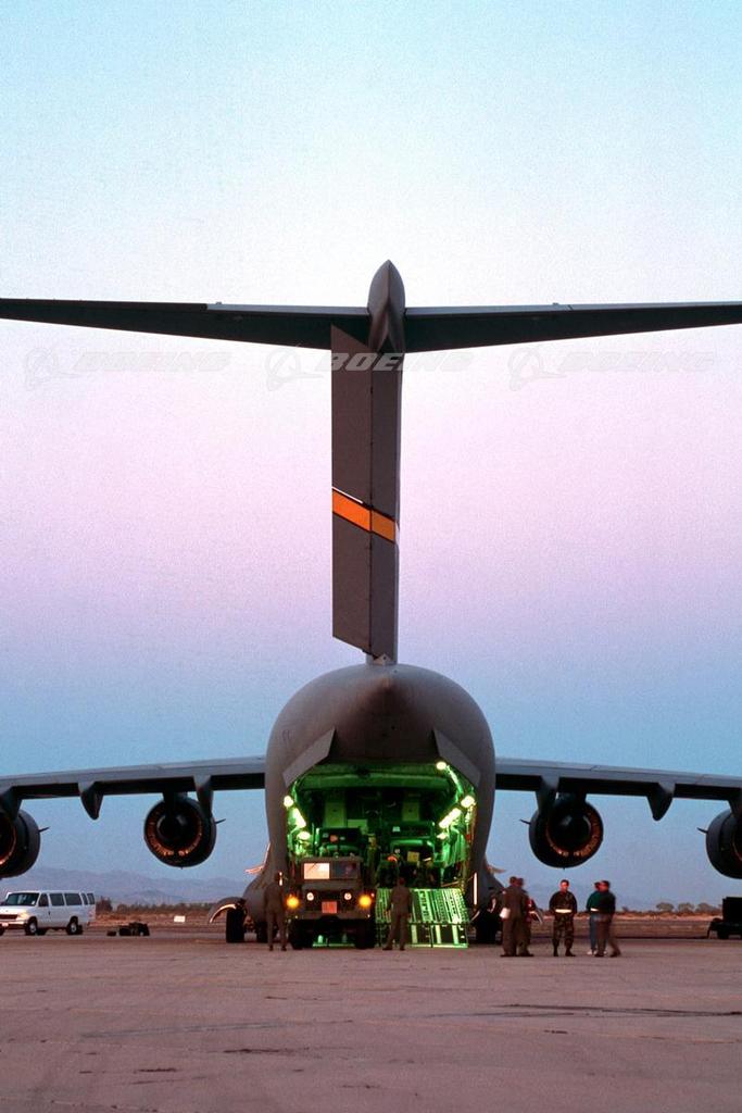 The C-17 Globemaster III can deliver heavy cargo loads over long distances and land on short, unimproved runways close to front lines. Deployed in June 1993, it won the Collier Trophy in 1994. It supported peacekeeping in Bosnia, Operation Allied Force in Kosovo, and the War on Terrorism in Afghanistan. During 2001, U.S. Air Force C-17s also flew more than 200 humanitarian missions, dropping more than 2.4 million ration packages.