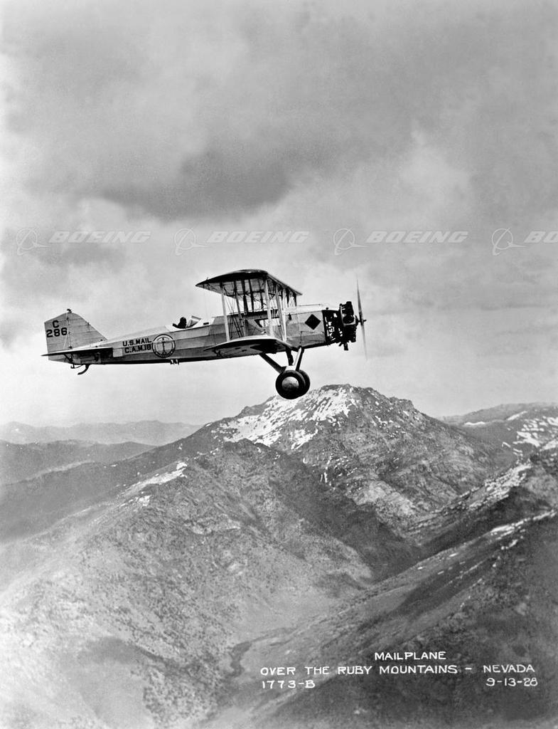 Boeing Model 40A Mail Plane in Flight Above Nevada's Ruby Mountains
