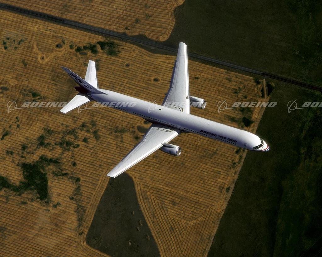 The twin-engine, medium-range Boeing 757 commercial transport first flew Feb. 19, 1982 and was up to 20 percent more fuel efficient than the 727s it was designed to replace. The 757-200, also offered as a freighter, can carry 239 passengers, in two classes, up to 4,520 miles. In September 1996, Boeing launched the 4,000-mile-range 757-300, a stretched model that seats from 243 to 279 passengers. In 18 years of operation, the 757 has carried more than 1.3 billion passengers, more than four times the population of the United States and Canada combined and has flown the equivalent of nearly 25,000 roundtrips between the Earth and the Moon.