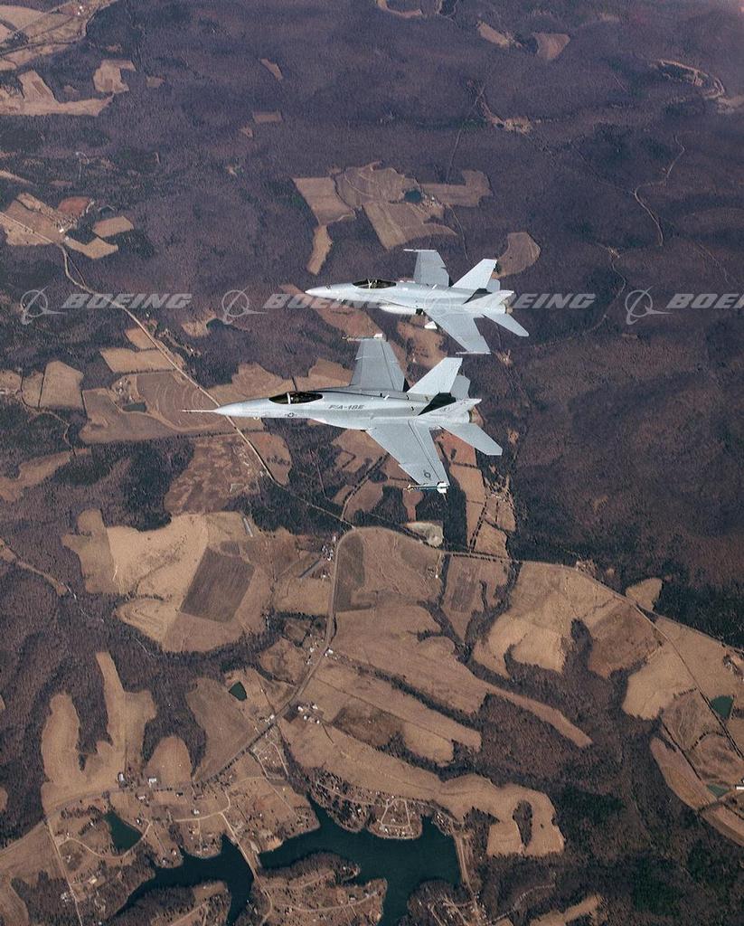 F/A-18E Super Hornet in Flight with F/A-18C Hornet