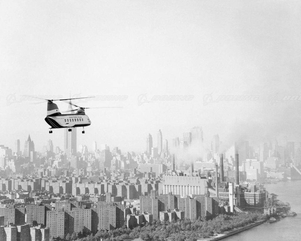 Boeing Vertol 107 Flying Over Manhattan Skyline